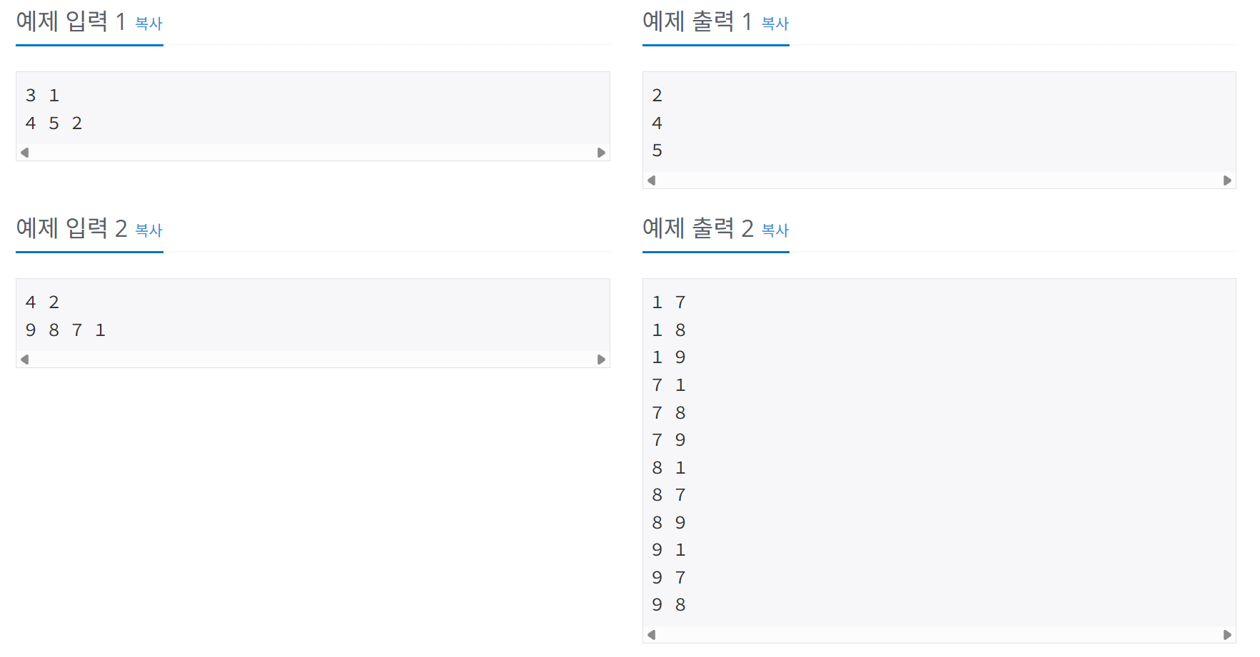 문제 문제접근 방법 해당 문제는 1~N까지의 자연수 중에서 M개를 고른 수열을 출력하는 프로그램을 작성하는 문제로M개를 고를때 같은 수를 여러번 골라도되지만 고른 수열은 비내림 차순이어야