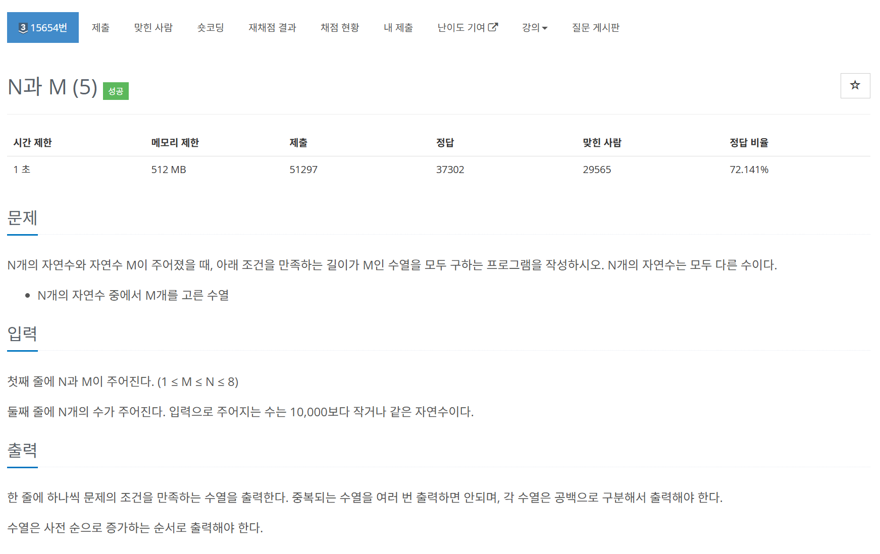 해당 문제는 N과 M이 각각 주어진다고 했을 때, N개의 자연수 중에서 M개를 고른 수열을 구하는 프로그램을 작성하는 문제로